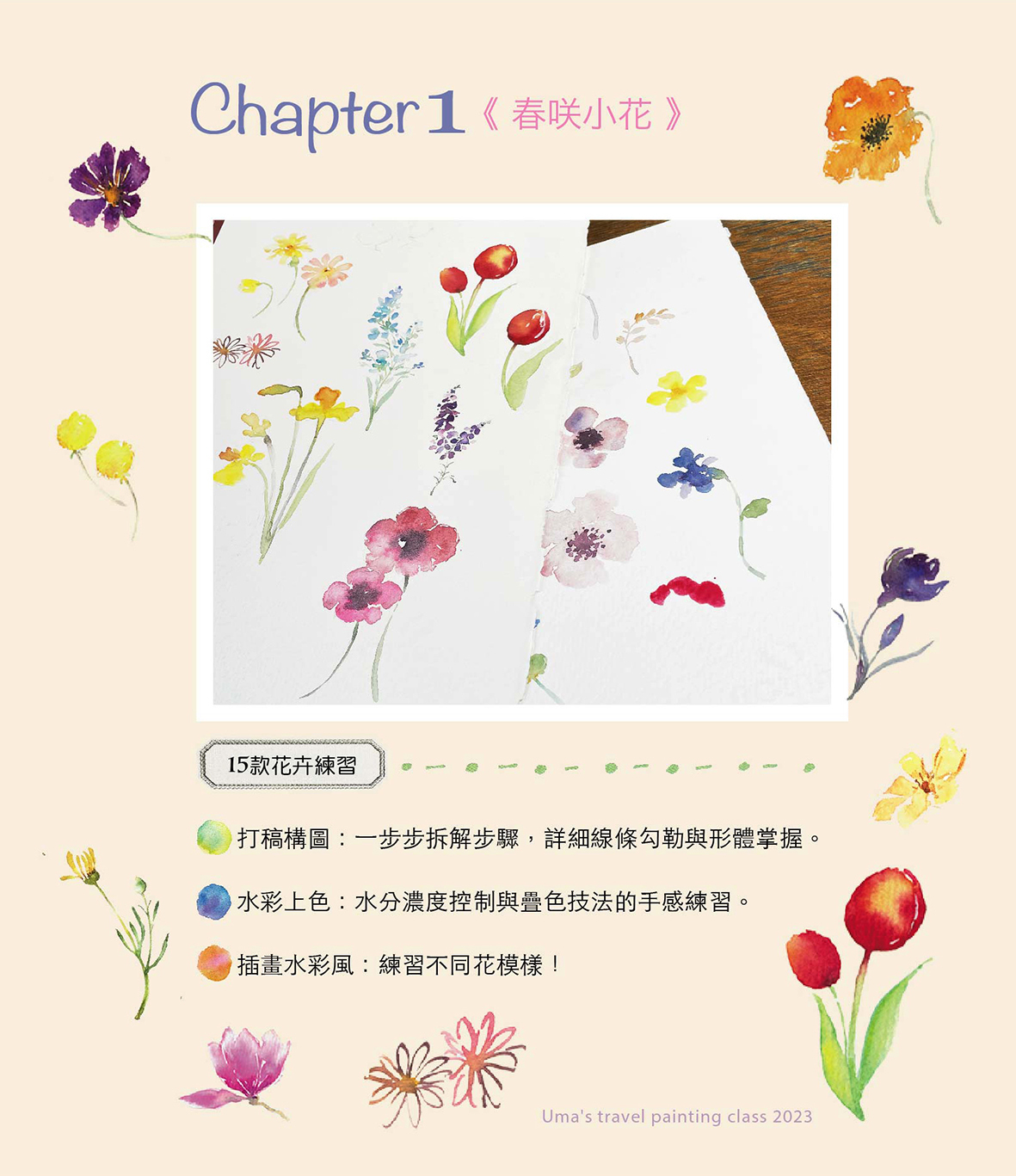 春咲花色哪些人適合?Who is suitable for topic A?- 打稿構圖:一步步拆解步驟,詳細線條勾勒與形體掌握,練習多款花模樣。