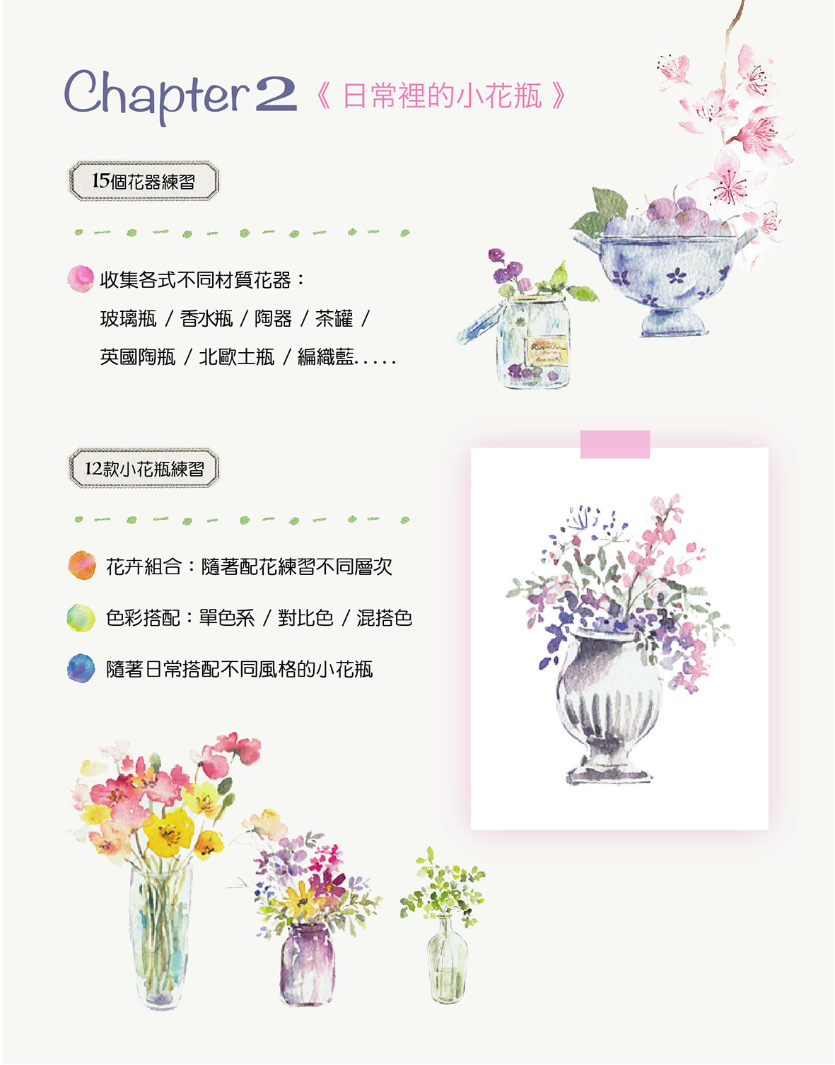 循序漸進式的50多款不同系列小幅花作品練習,很適合日常水彩練習!